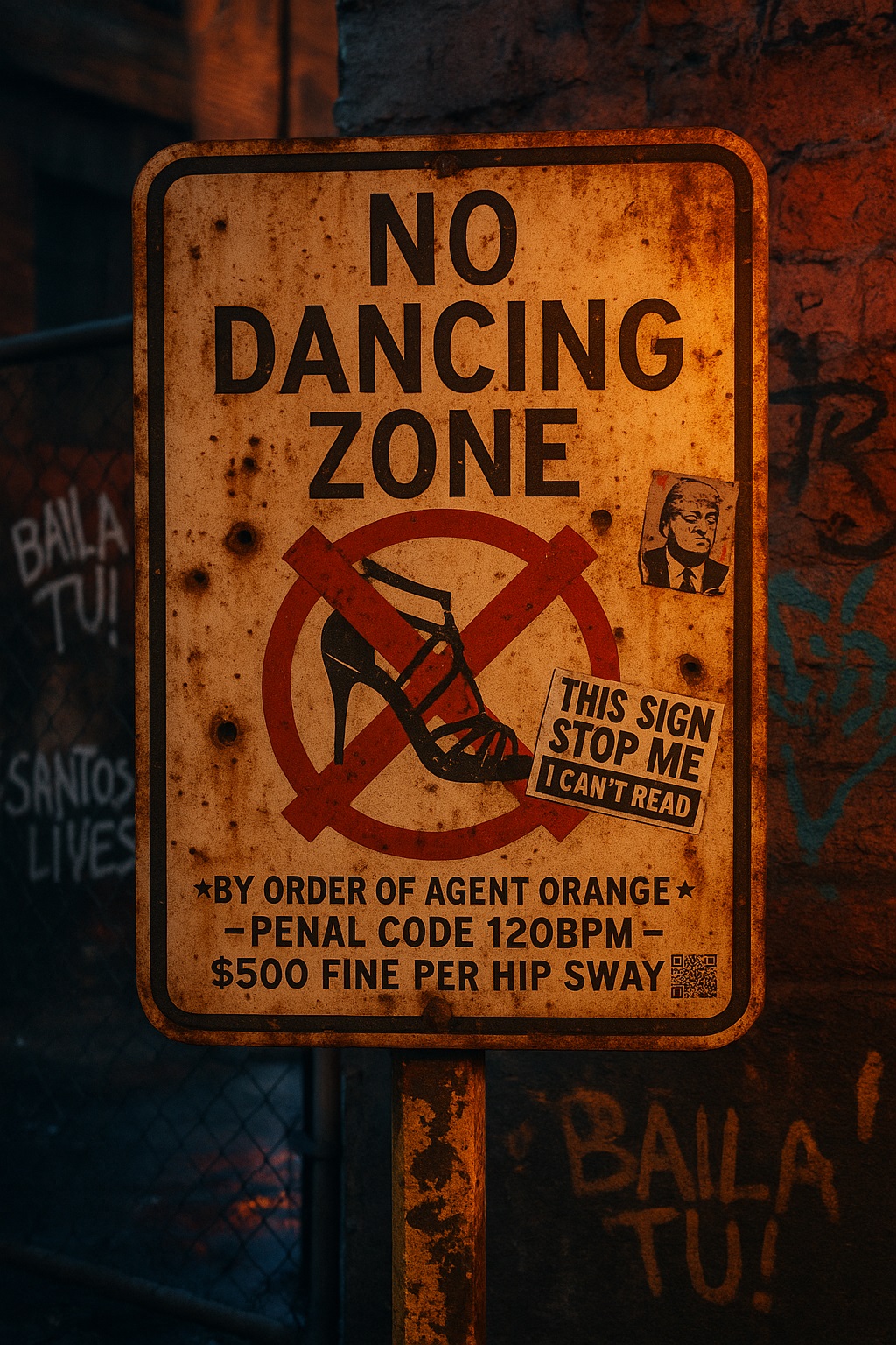 Under Executive Order 120 BPM, all bachata music has been classified as a "subversive substance," punishable by mandatory re-education via square-dancing classes. The LAPD's new "Rhythm Patrol" units have been authorized to use non-lethal maracas to disorient offenders before hauling them away for interrogation.